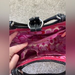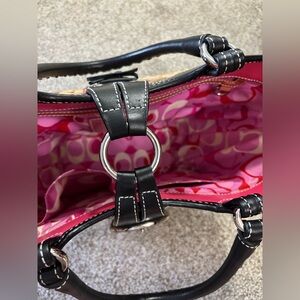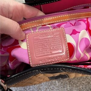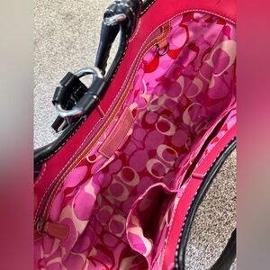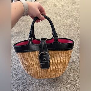 Elevate your style with this chic woven tote bag. Authentic vintage Coach. Featuring a striking black and tan design, this bag is perfect for any occasion. The vibrant pink interior adds a pop of color, making it both fashionable and functional. This bag is in like-new condition with no flaws. Has a solid structure and would be the perfect addition to someone’s collection!! Comes from a smoke-free and pet-free home. Please send offers as I am willing to accept anything reasonable!!! :)