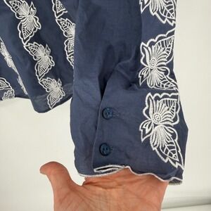 Sundance Navy Butterfly Embroidered Button Front Cotton Blouse Size 12