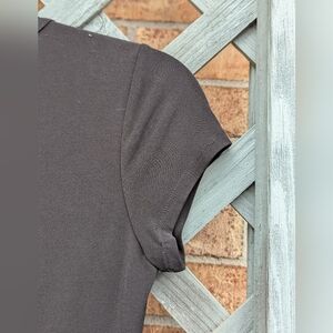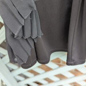 black cap sleeve dress. sheer pleating on lower part with lining. does have light pilling. could use a sweater shaver to clean up.