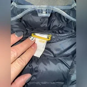 Lolë Hooded Navy and White Puffer Vest, women’s large