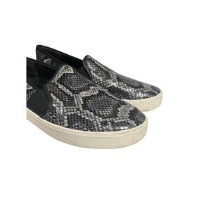 Vince Womens 7.5 Snakeskin Slip On Sneakers Black Gray Leather Loafers