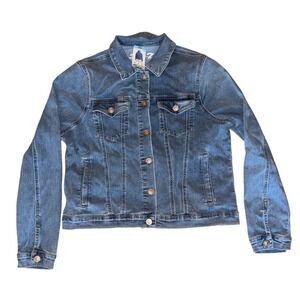 Seven 7 Women's Denim Jacket Blue Size L Casual Long Sleeve Jean Y2K trucker $89