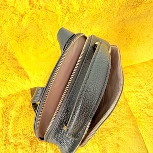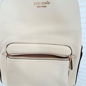 Chic Kate Spade backpack in ivory leather. Features a front zip pocket and sleek design.