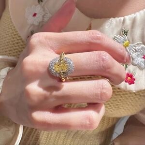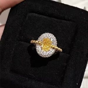 This elegant ring is crafted from 925 sterling silver and features a sparkling oval yellow zircon at the center, surrounded by delicate clear zircon accents. A timeless and eye-catching piece perfect for both everyday wear and special occasions.
