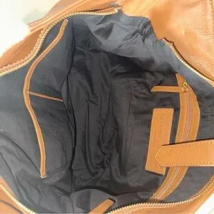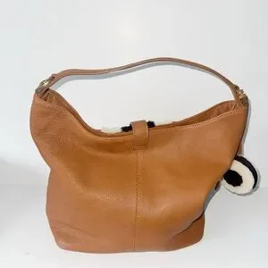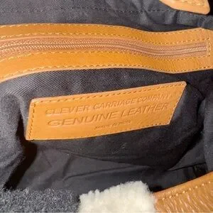 Clever Carriage Tan Leather Hobo Bag Shearling Detail EarPod Case Cowboy Rodeo