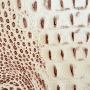 Chic shoulder bag with crocodile texture. Cream and brown tones. Ideal for stylish outings.
