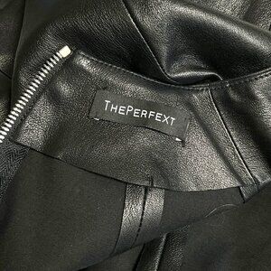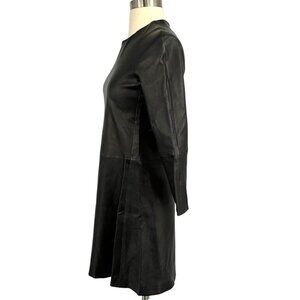 THEPERFEXT Harlem Leather Dress Black Zip Back 3/4 Sleeves Size M Medium
