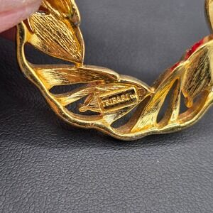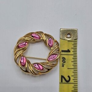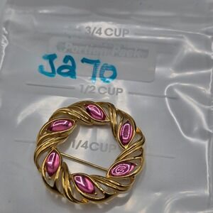 Trifari Womens Gold Tone Pink Glass Jelly Brooch Pin Beauty Fashion 1.5"X1.5"