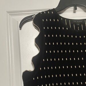 Elegant mini dress with a unique pattern. Sleeveless design. Perfect for stylish outings. EUC. See size chart. UK size 3 fits US size 8 perfectly.
