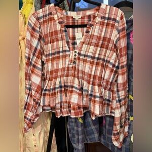 NWT Anthropologie Pilcro Long-Sleeve Pleated Swing Blouse - red motif - Medium, XL