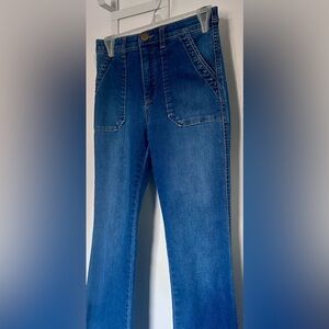 Stylish flare jeans by Democracy. Dark blue hue. Perfect for casual wear.