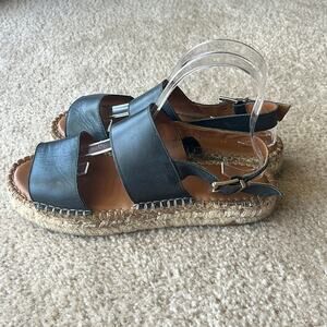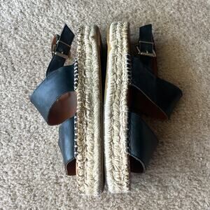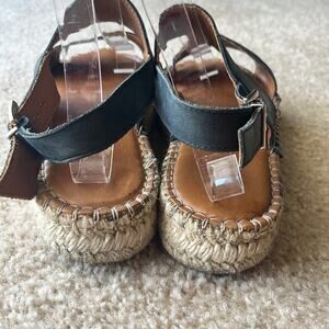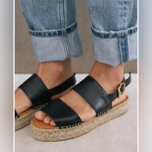 Alohas double black leather straps espadrilles sandals.