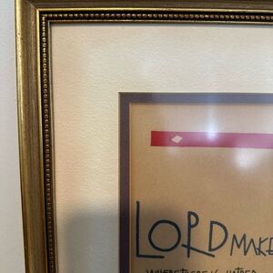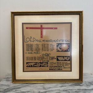 Framed artwork with inspirational text and cross design. Features a gold frame.