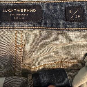 Stylish dark blue jean shorts. Comfortable fit. Ideal for casual outings.