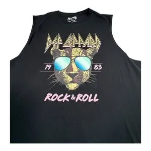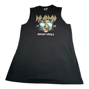 Keywords: Def Leppard, Rock and Roll, Band T-Shirt, Sleeveless Shirt, T-Shirt Dress, Graphic Tee, Men's Fashion, Retro Rock, Concert Merch, 1980s Music, Vintage Style, Leopard Print, Music Apparel