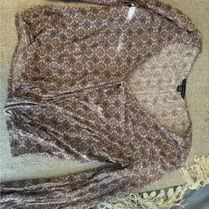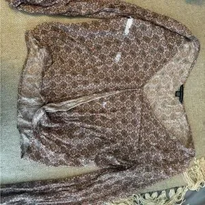 Made of lightweight and breathable viscose fabric, this blouse is perfect for all seasons. It is easy to care for, quick-drying, and stretchy, making it a practical addition to any wardrobe. This blouse is a size M and comes from India.
