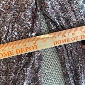 This American Eagle Outfitters blouse is a must-have for any fashion-forward woman. The multicolor floral pattern and V-neckline make it perfect for any occasion, whether it's a casual day out or a party. The relaxed fit and wide straps provide comfort and versatility, while the ruffle accents and slimming features add a touch of bohemian style.