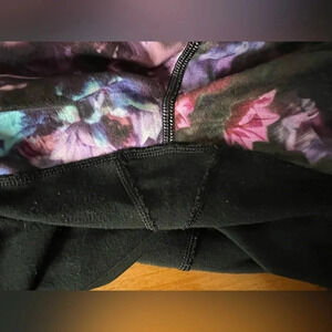 In very good, clean condition. Black base colour with multicolour floral pattern throughout the front. Lulu logo on the back. Tiny waistband pocket that has the size dot. I do believe these are Wunder Under style!