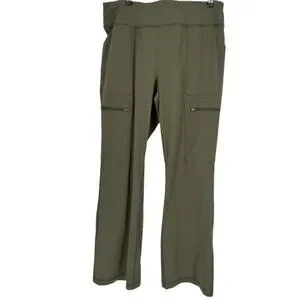 Cargo Pants, Bootcut Pants, Olive Green, Utility Wear, Hiking Pants, Workwear, Women's Large Short, Supplex Nylon, Lycra Spandex, Moisture Wicking, Flexible Pants.