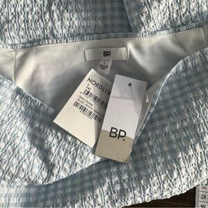 Brand new with tags BP (Nordstrom) blue and white gingham mini skirt. Super cute summer staple with a flattering high-rise waistband and flowy tiered hem. Lightweight cotton feel with that classic picnic-core / coastal vibe. Perfect with a baby tee, tank, or cardigan.