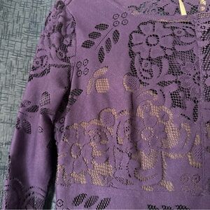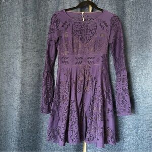 Free People Dress Purple Lace Fairy Bell Sleeve Empire Waist Full Skirt Size 0