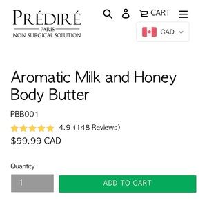 Indulge in the luxurious Prédiré Aromatic Milk & Honey Body Butter. This moisturizer features a soothing silver and white design, perfect for nourishing your skin.