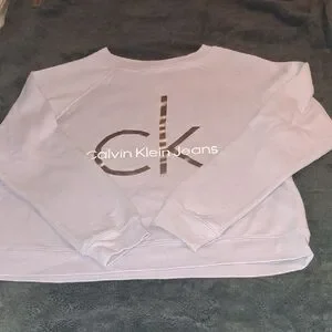 EUC purple logo sweatshirt by Calvin Klein. No stains. No damage. Very soft and cozy. Pretty silver metallic logo print. Crew neck and slightly cropped. Size M, true to size.