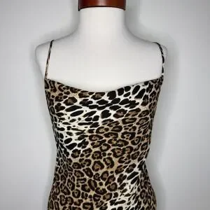 Speechless Leopard Print Mini Slip Dress Small Y2K 90s Spaghetti Strap Cowl Neck