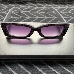 Chic Ed Hardy sunglasses with a white floral frame. Features stylish pink lenses.