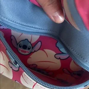 Charming kids backpack featuring a delightful Stitch design. This pink and blue bag is perfect for adding fun to any child's outfit.