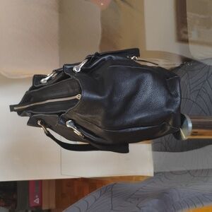 Vince Camuto black leather tote with gold-tone accents. Ideal for daily essentials. Durable handles and roomy interior. This is a big bag, In excellent used condition.