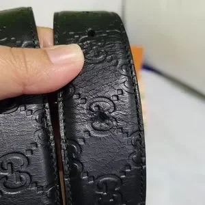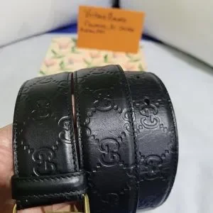 Elevate your style with this Gucci black leather belt featuring a striking gold buckle. Perfect for adding a touch of luxury to any outfit.