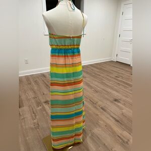 Ann Taylor Halter Maxi Dress Striped Multicolor Tie Back Womens Size 0