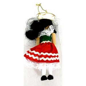 Kurt Adler Spanish Mexican Girl Christmas Ornament Wood Hand Crafted 4.75" Vtg