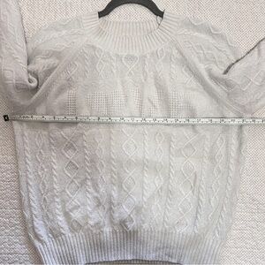Stay cozy and stylish with this elegant white cable knit sweater. Perfect for any occasion, it offers both comfort and sophistication.