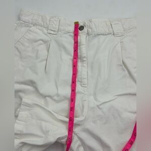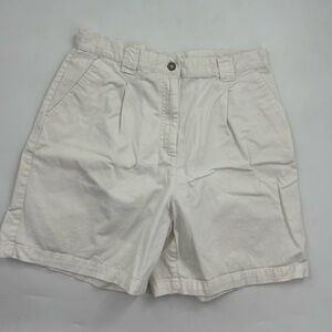 The product is a vintage pair of 90s Bill Blass high rise mom white jean shorts in a size 16 with a button and zipper closure. These white shorts are made from cotton and have a waist to hem measurement of 13 inches. With a hip hop look, these original shorts from the 1990s are perfect for casual occasions and would make a stylish addition to any woman's vintage collection.