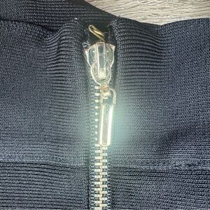 Bebe Bandage Bodycon Midi Skirt Women’s Medium Black with gold hardware. Fitted Sleek Curve Hugging. Good used condition. Back zipper closure.