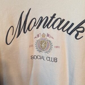 Soft cream sweatshirt with Montauk Social Club design. Comfortable and stylish.