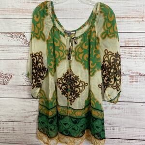 Hale Bob 100% Silk half balloon sleeve sheer scoop neck size large Tunic blouse