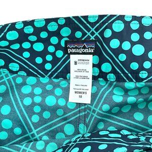 Patagonia Women's 10 Wavefarer Board Shorts Green Polka Dot 4" Inseam Swim Hike
