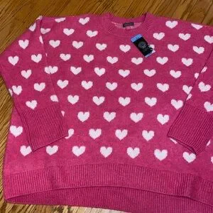 Fuchsia sweater with charming white hearts. Soft and cozy. Ideal for everyday wear. reposhing, bought to wear last year and only worn once. Cute for Valentines! 💘