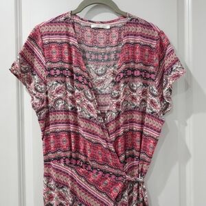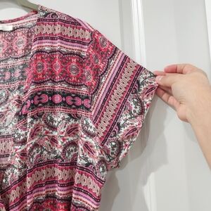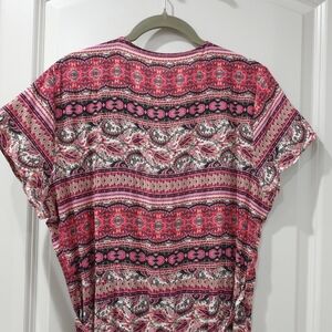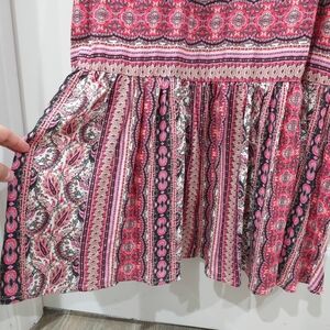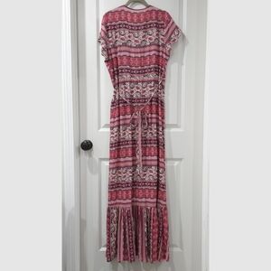 Embrace a bohemian vibe with this stunning red maxi dress. Perfect for beach outings or casual gatherings. Please view measurements as it runs a little small. Beautiful red and white print on a lightweight, breathable soft fabric. Great condition. no flaws seen.