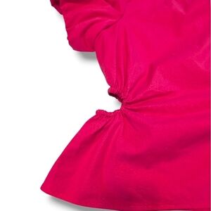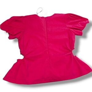 Like New Scoop Peplum Puffy Sleve Cutout Blouse In Hot Pink, Size Xl