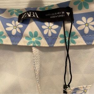 Zara Geometric Patterned Trousers - Blue and White NWOT