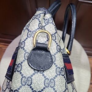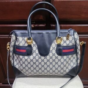 Elevate your style with this elegant Rare Vintage Gucci handbag. Featuring a sophisticated blue leather and GG design, this bag is perfect for any occasion. Crafted with attention to detail, it offers both luxury and functionality.