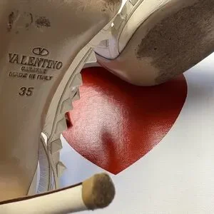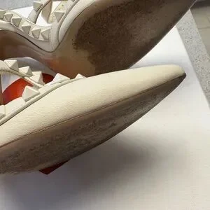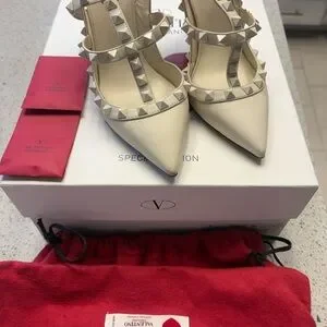 Elegant ivory heels with signature studded straps. Perfect for adding a chic touch to any outfit. Size 5, will fit a size 5.5 as well. Cones with everything you see. 100% authentic and rare (special edition)