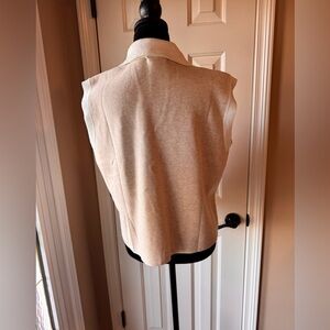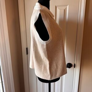 New York & Company Beige & White Collared Sleeveless Cropped Knit Top size xl