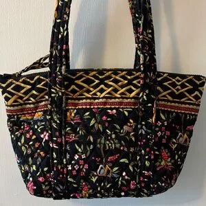 Vera Bradley Floral Ming Oriental Black Tote Bag- Medium