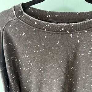 Chic black sweatshirt with white speckles. Comfortable and stylish for everyday wear.