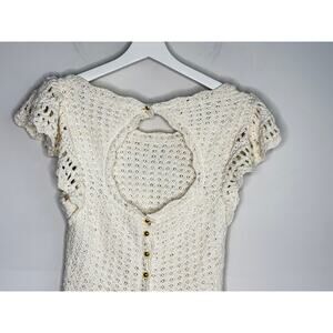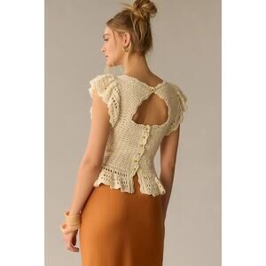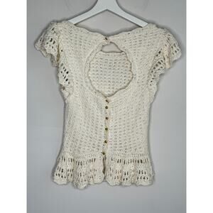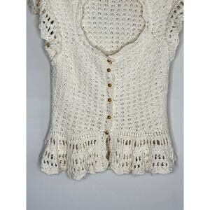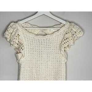 By Anthropologie Flutter-Sleeve Crochet Peplum Sweater Top Cream Women's Small